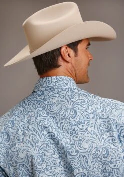 Stetson Blue Tooling Paisley Long Sleeve Shirt