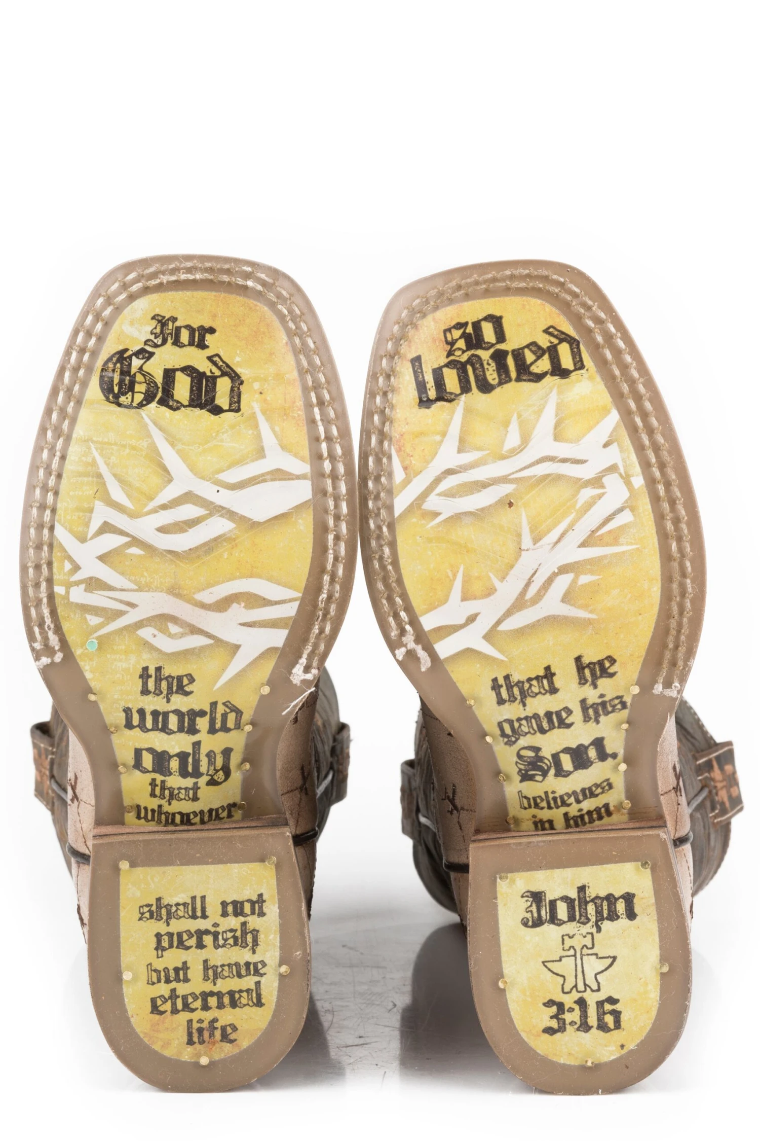 SKU: D2F5B 7518093345015 Category: Boys Tags: Anniversary Special, Boot, Boots, BOYS, Color: TAN, Embroidery, FEATHER PLUME / PEACOCK SOLE, FOOTWEAR, Leather, LIL GOSPEL, LIL GOSPEL / John 3:16 Sole, LITTLE KIDS, SPECIAL VALUE, SQTOE GROWTH SPURT INSOLE & OBVIOUS SOLE