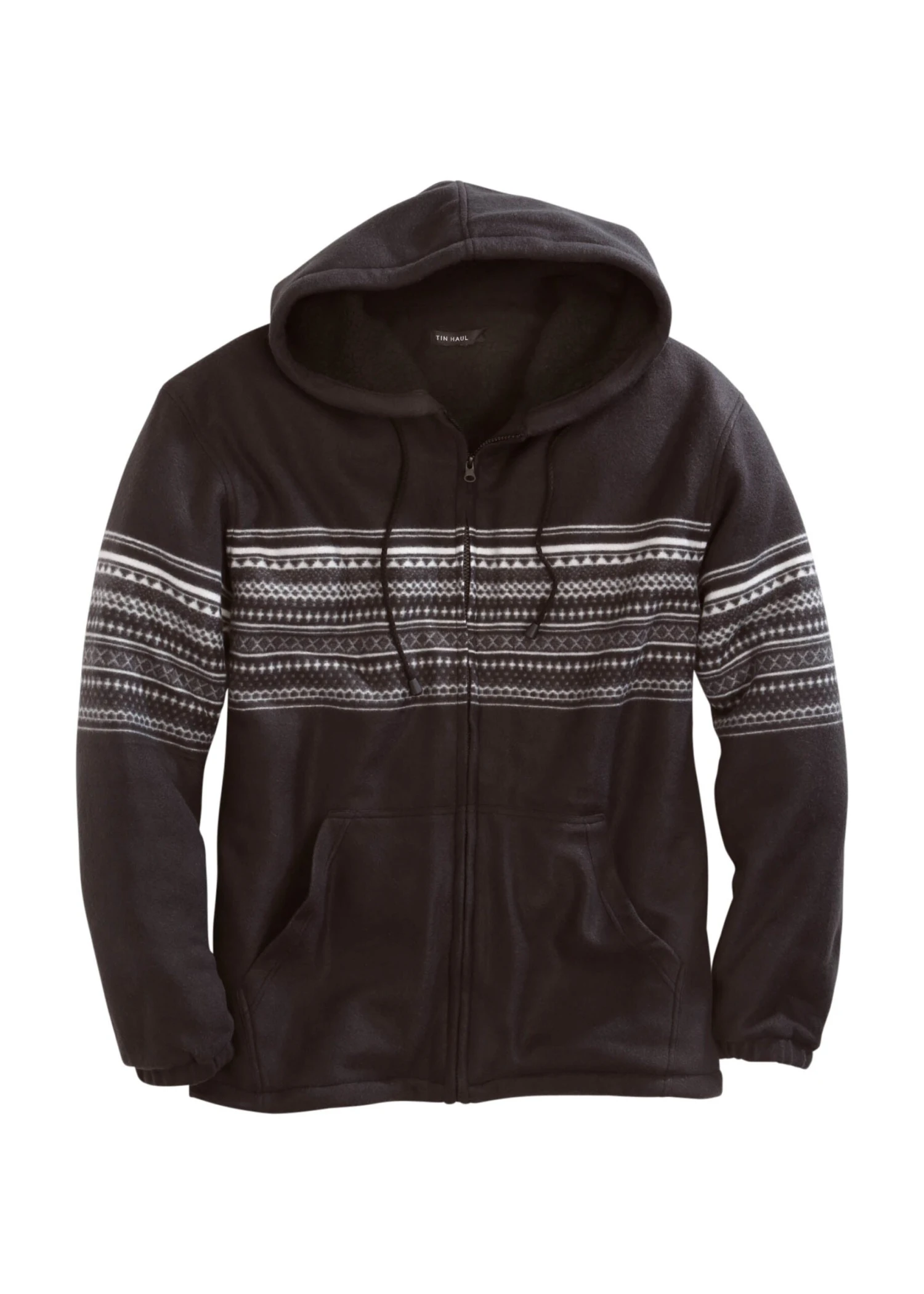 Men’s Aztec Print Polar Fleece Jacket * Zip Front * Hood W/Drawstring & Black Faux Sherpa Lining * Front Kangaroo Pockets * Elastic In Cuffs