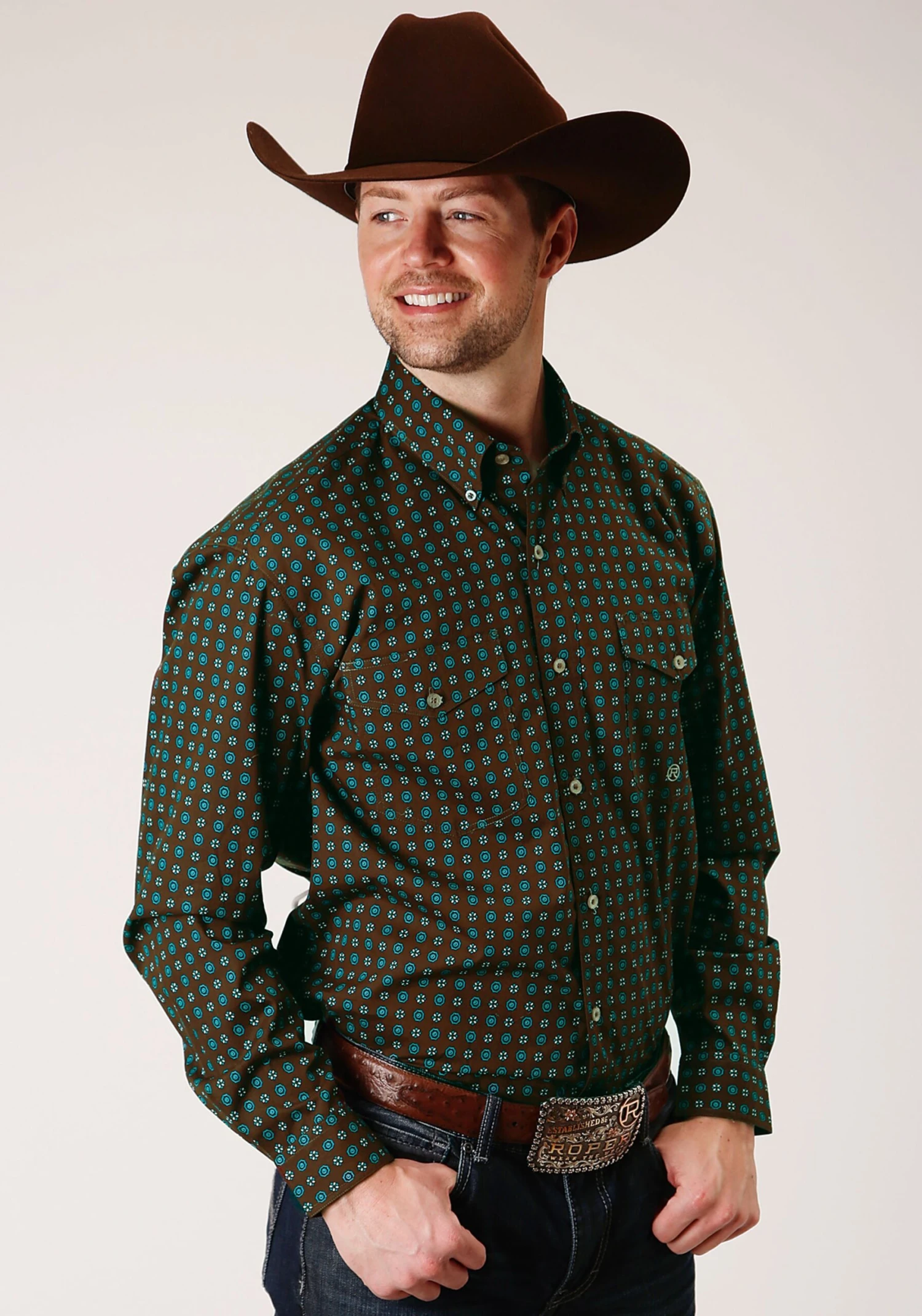Men’s Long Sleeve Shirt * Snap Front * 1 Point Curved Front Yokes * 1 Point Curved Back Yoke * 1 Point Flaps & Pkts * 3 Snap Cuff * Roper “R” Embroidery