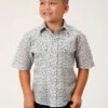 Boys Long Sleeve Western Shirt * Snap Front * Spread Collar * 1 Point Back Yoke * 2 One Point Pockets & Flaps * Roper “R” Embroidery