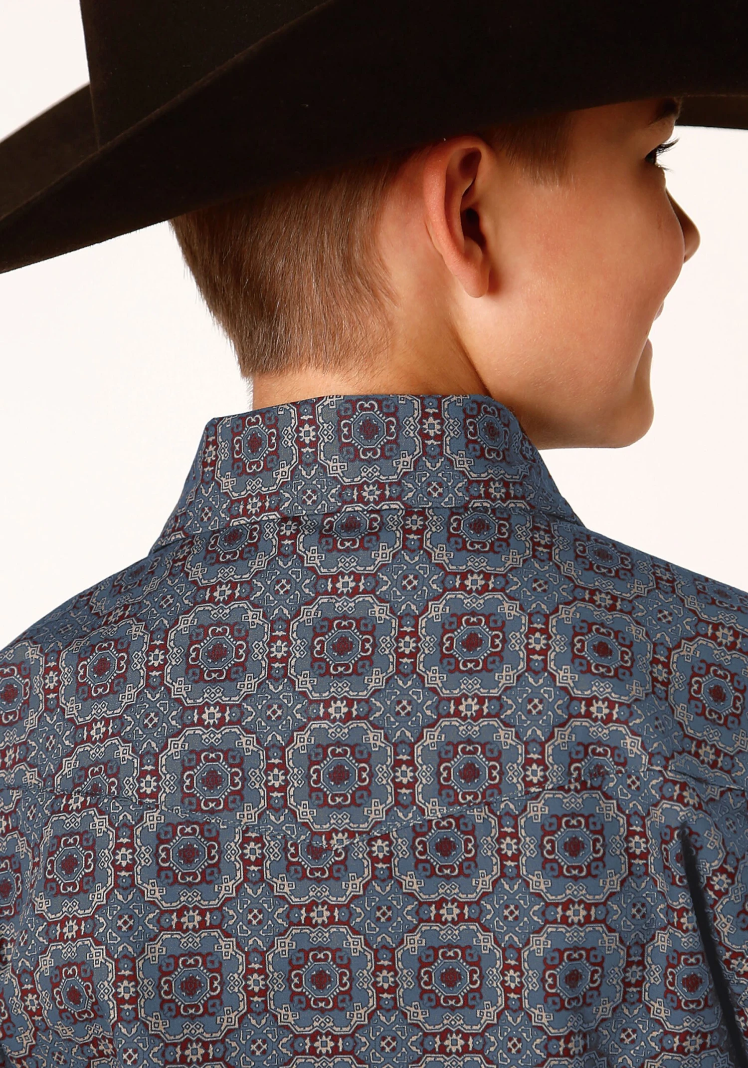 Boys Long Sleeve Western Shirt * Snap Front * Spread Collar * 1 Point Back Yoke * 2 One Point Pockets & Flaps * Roper “R” Embroidery