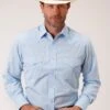 Men’s Long Sleeve Shirt * Btn Dn Collar * Straight Back Yoke W/Pleat & Locker Loop * 1 One Point Open Pkt * Roper “R” Embroidery