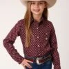 Girl’s Red Jersey Knit Long Sleeve Tee * Self Cuff And Waistband * Crew Neck * Screen Print Decoration * Garment Washed For Softness