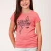 Girl’s Grey Jersey Knit Tee * Long Sleeve * Scoop Neckline * Screen Print Decoration * Garment Washed For Softness