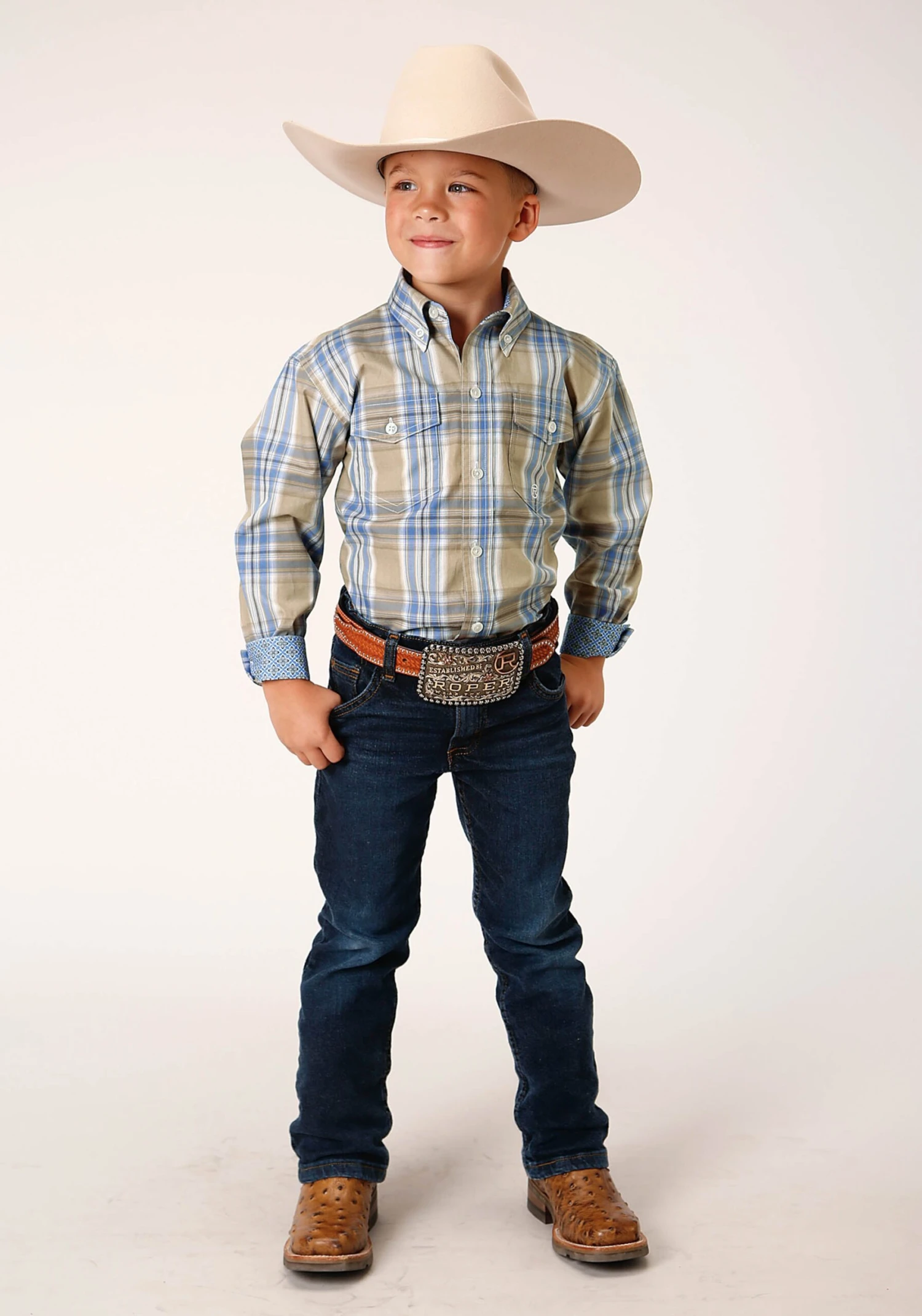 SKU: D2F5B 7914118840567 Category: Boys Tags: 100% COTTON, 1552 SANDY PLAID, 2 Pocket, Amarillo, AMARILLO BTN AC ALLOVER PRINTS, AMARILLO Y/DYED PLAIDS - COTTON, APPAREL, Blue Thistle, Boy's Amarillo Collection- Blue Thistle, BOYS, Button, Color: BLUE, Color: TAN, Long Sleeve, Plaid, Print, PRINTED, Tops, Woven, YARNDYE