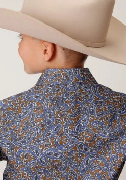 SKU: D2F5B 7914118512887 Category: Boys Tags: 1 Pocket, 100% COTTON, 1556 VALLEY PAISLEY, 2 Pocket, Amarillo, AMARILLO ALLOVER PRINT 1POCKET Button, AMARILLO SNAP ALLOVER PRINT, APPAREL, Blue Thistle, BOYS, Boys Amarillo Collection- Blue Thistle, Button, Color: BLUE, Color: BROWN, Long Sleeve, Print, PRINTED, Short Sleeve, Snap, Tops, Woven