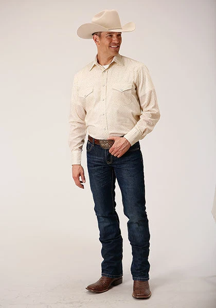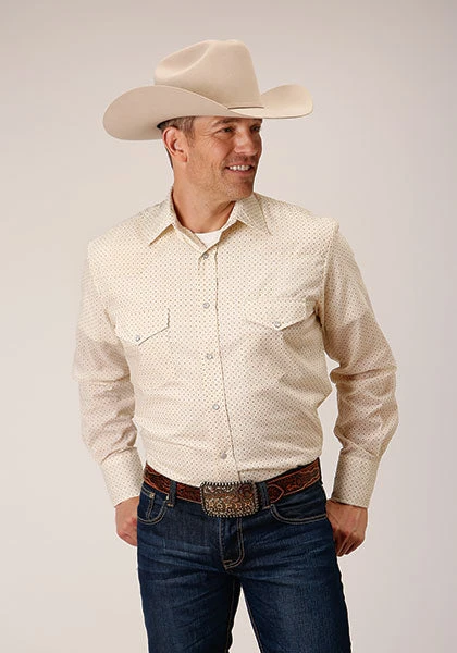 Men’s Long Sleeve Western Style Shirt * Standard 1 Pt. Front & Back Yokes * Patch Pockets & Flaps * Cotton/Poly Fabric Printed With Allover Or Wallpaper Stripe Florals * 3 Snap Shaped Barrel Cuff