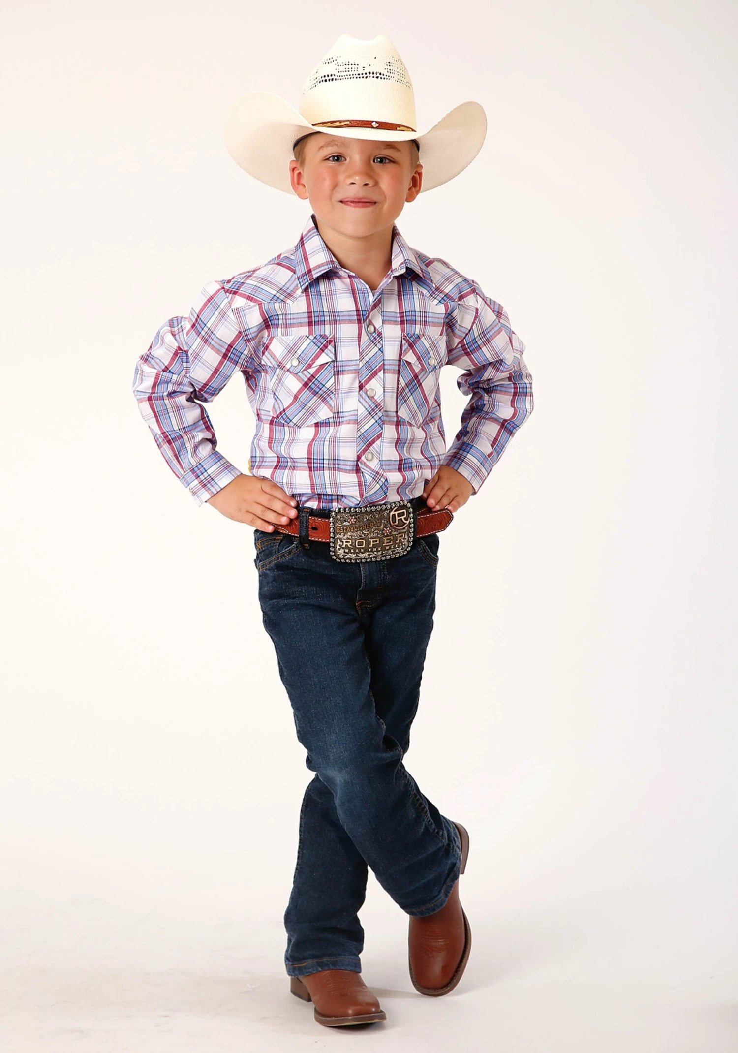 Boy’s Long Sleeve Western Style Shirt * Standard 1 Pt. Front & Back Yokes * Patch Pockets & Flaps * Cotton/Poly Plaid YD Fabric * 1 Snap Cuff