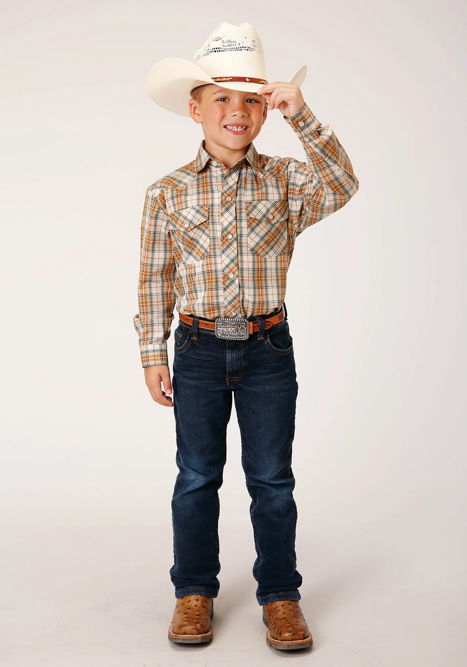 ROPER 1630 KHAKI/FOREST GREEN/CREAM PLAID