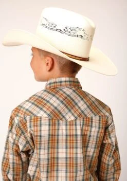 Boy’s Long Sleeve Western Style Shirt * Standard 1 Pt. Front & Back Yokes * Patch Pockets & Flaps * Cotton/Poly Plaid YD Fabric * 1 Snap Cuff