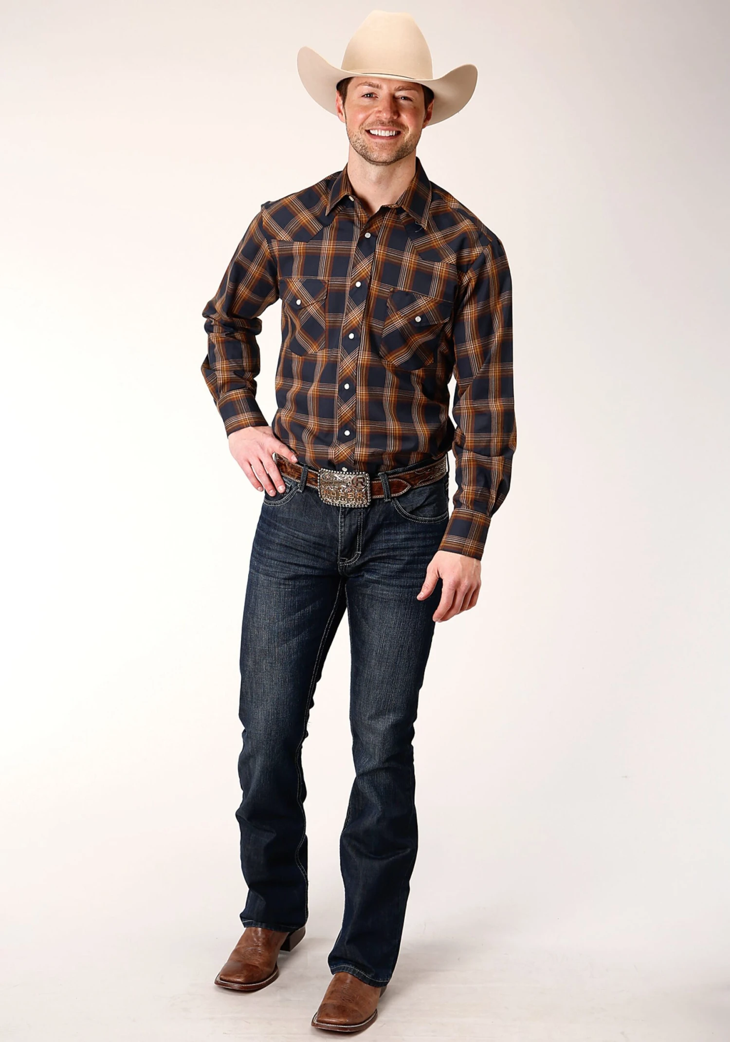 Men’s Long Sleeve Western Style Shirt * Standard 1 Pt. Front & Back Yokes * Patch Pockets & Flaps * Cotton/Poly Plaid YD Fabric * 3 Snap Shaped Barrel Cuff