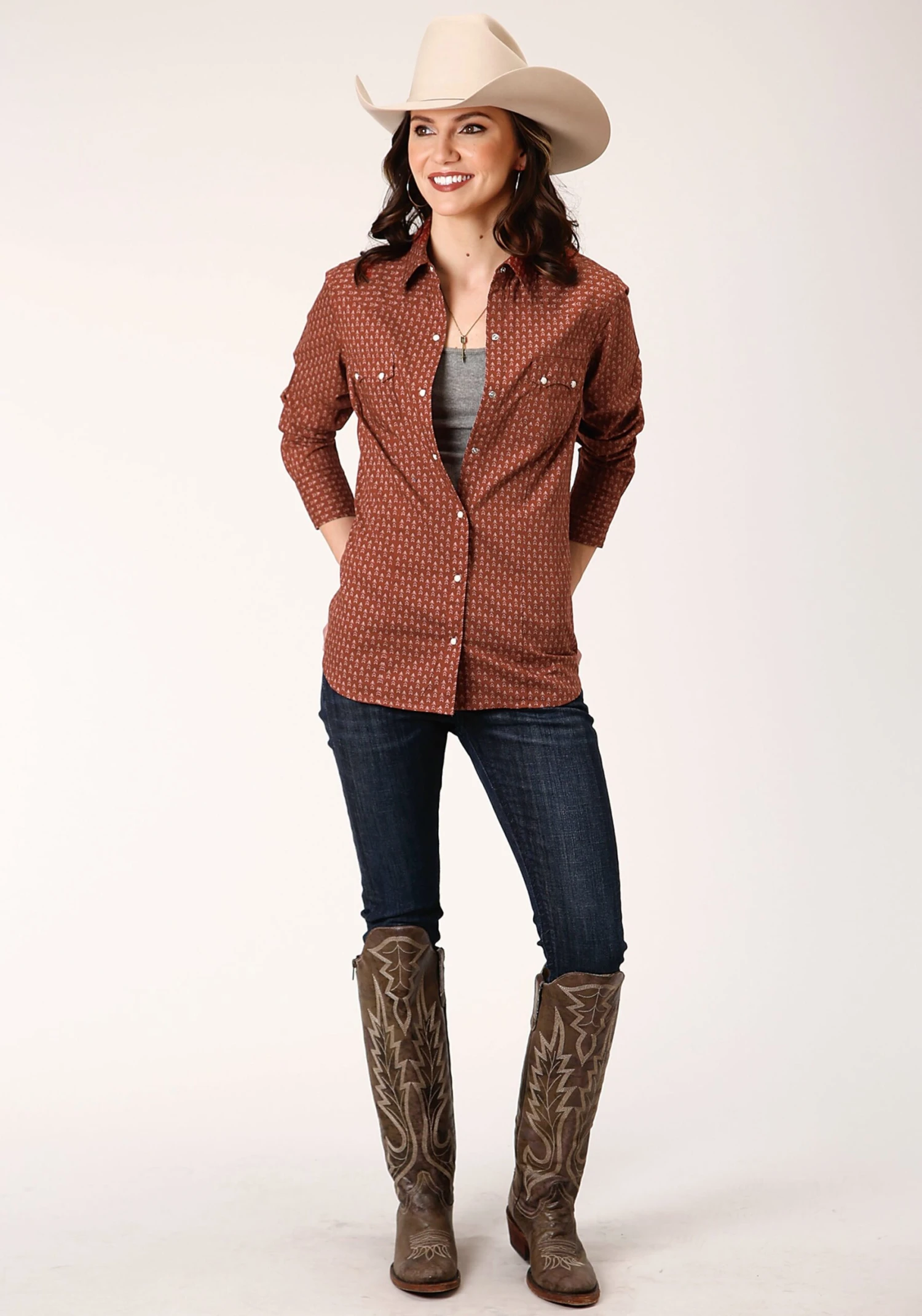 SKU: D2F5B 7857267343607 Categories: Tops, Women Tags: 100% COTTON, 1367 ARROW GEO, 2 Pocket, APPAREL, Color: BROWN, Long Sleeve, NONE, PERFORMANCE Y/D ALLOVER PRINT -SNAP, Print, PRINTED, Snap, Tops, West Made, West Made Collection, WOMENS, Woven