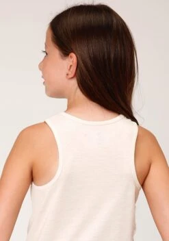 Girl’s Cream Jersey Knit Tank With Front Tie Hem * Racerback Design * Screen Printed Decoration