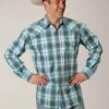 Men’s Long Sleeve Shirt * Bttn Dn Collar * 1 Pt Back Yoke W/Pleat & Locker Loop * 2 One Point Pkts & Flaps * Roper “R” Embroidery