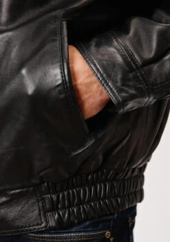 Lamb Touch Nappa Bomber Jacket * Two Point Front And Back Yoke * Covered Placket * Zip Front * Double Snap Cuff * Side Elastic Waistband * Angled Double Welt Front Pockets *