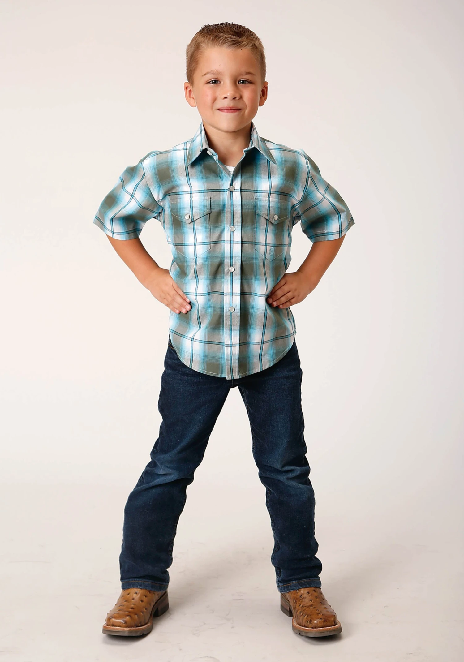 Boys Short Sleeve Western Shirt * Snap Front * Spread Collar * 1 Point Back Yoke* 2 One Point Pockets & Flaps * Roper “R” Embroidery