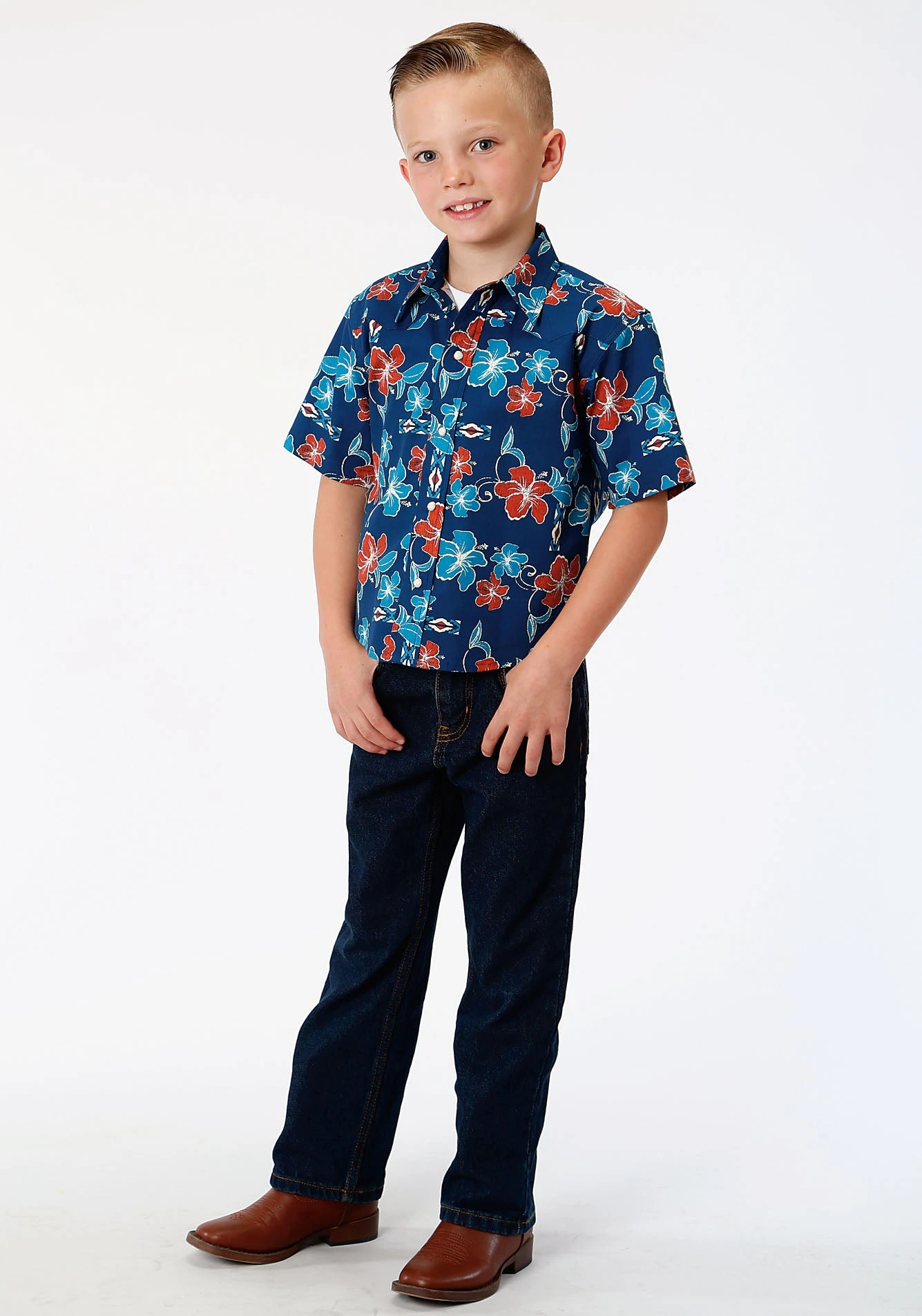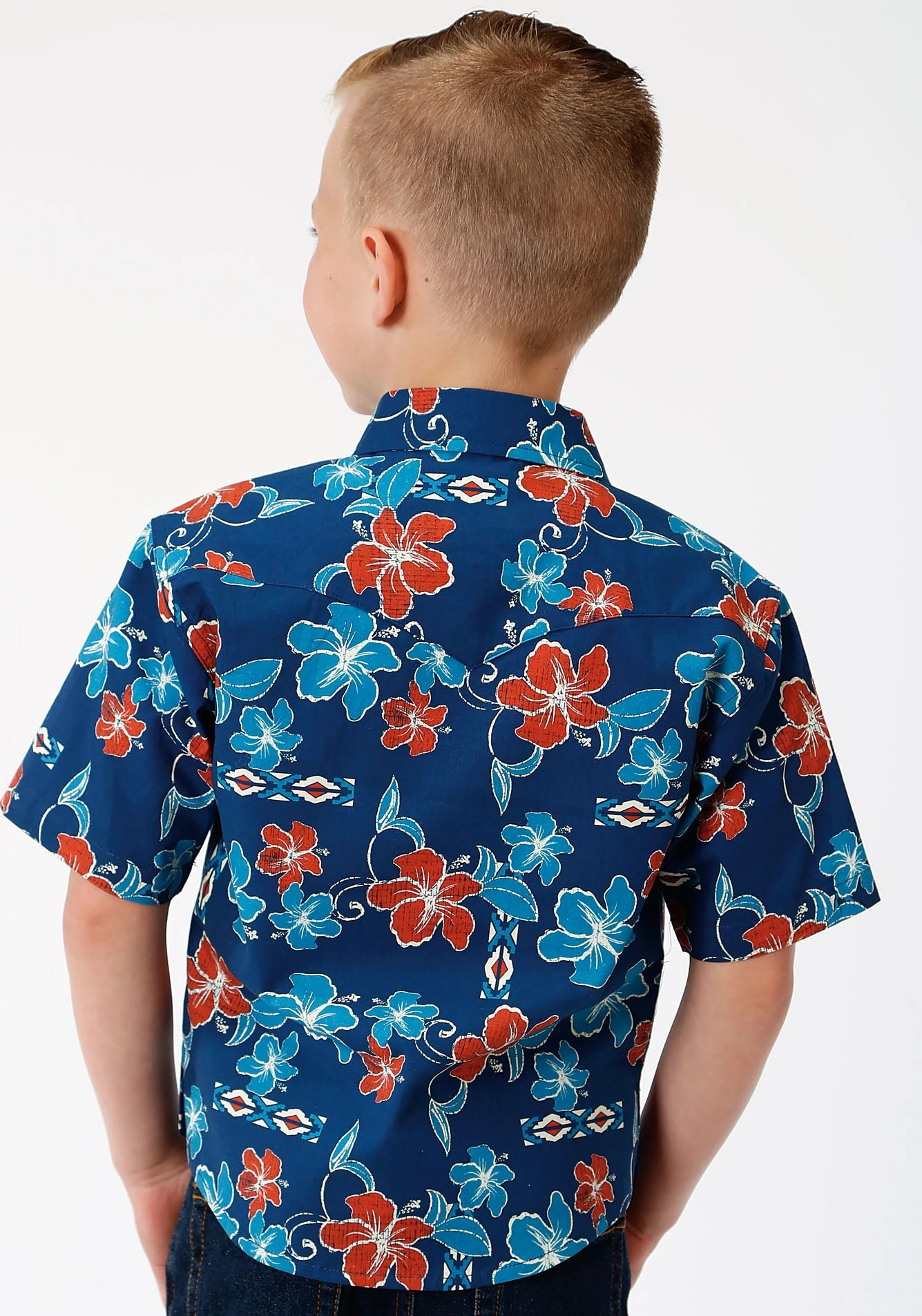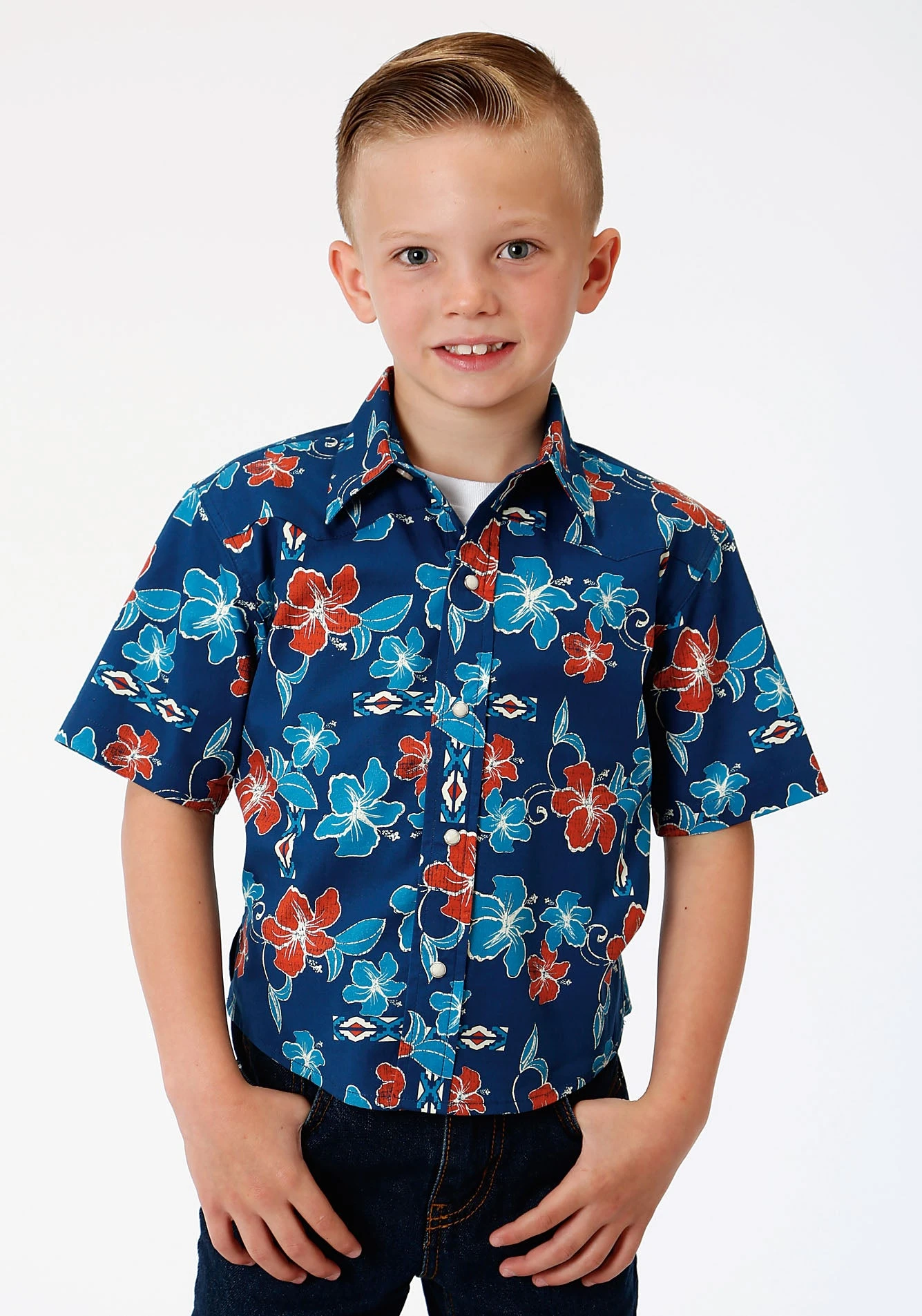 Boy’s Short Sleeve Western Style Shirt * 1 Pt Curved Back Yoke * 1 Open Pocket * Slightly Straight Hem W/Side Vent Detail * Cream Opaque Snap Front * Garment Washed