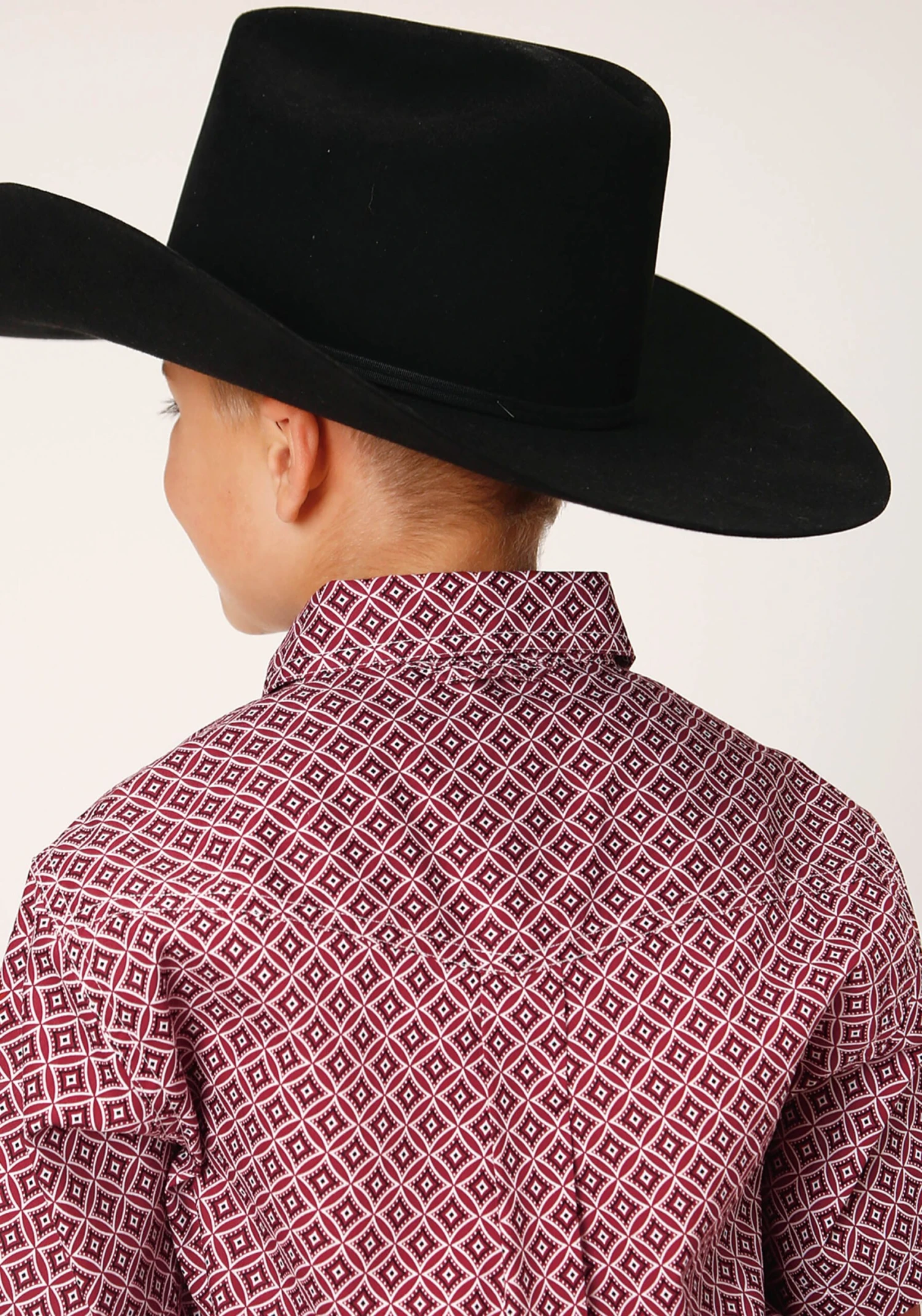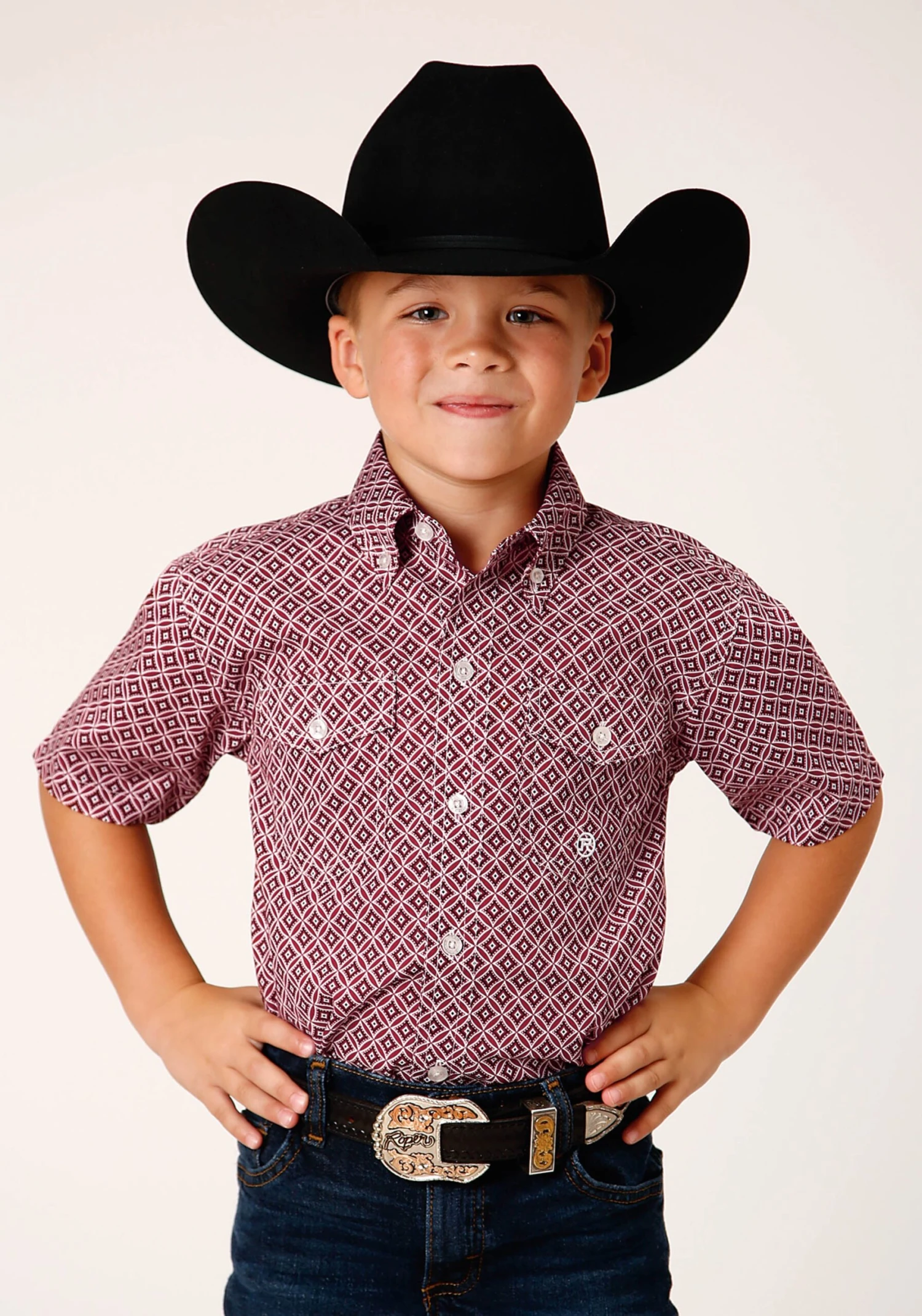 Boy’s Short Sleeve Western Shirt * Button Front * Button Down Collar * 1 Point Back Yoke W/Pleat & Locker Loop * 2 One Point Pockets & Flaps * Roper “R” Embroidery