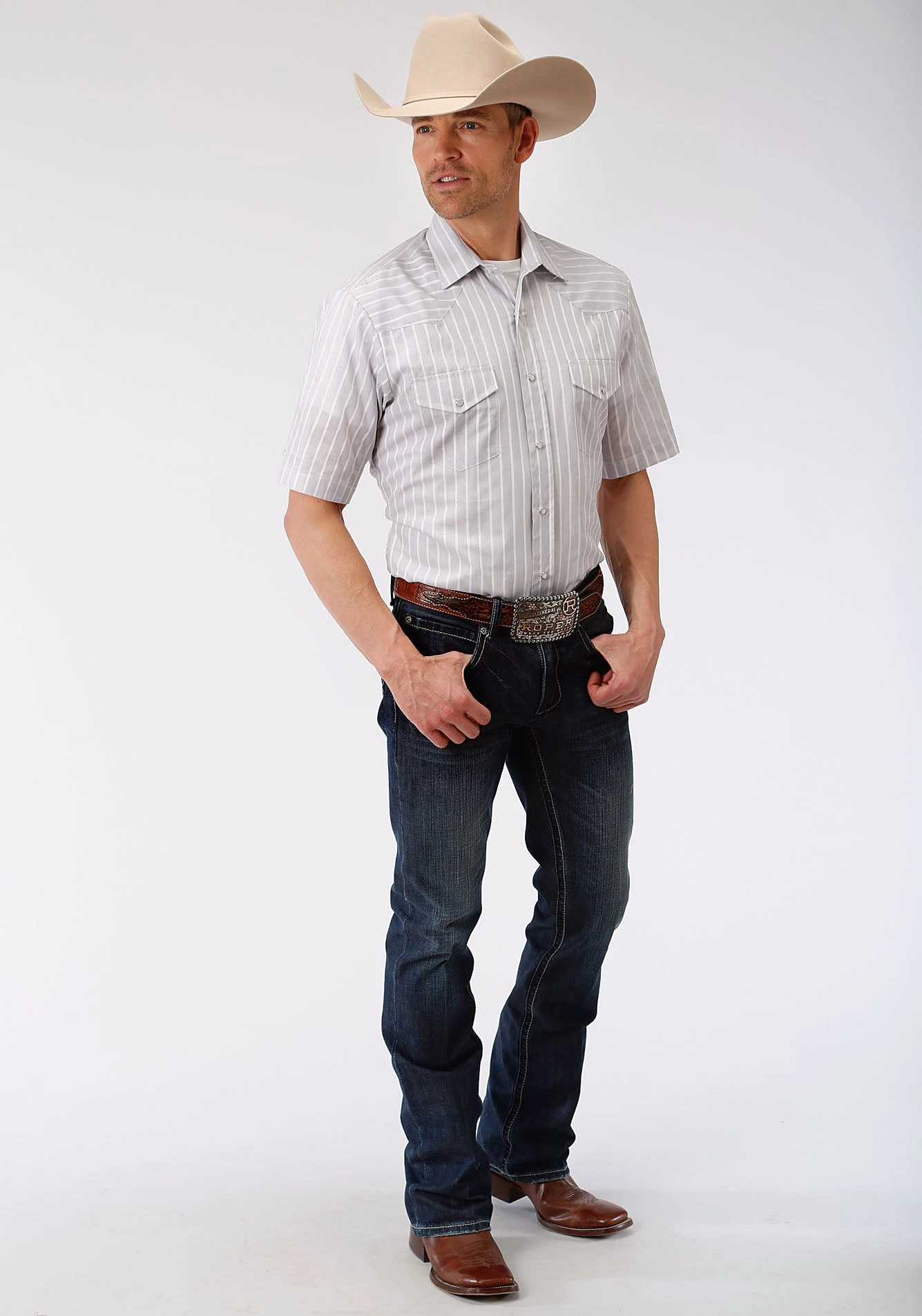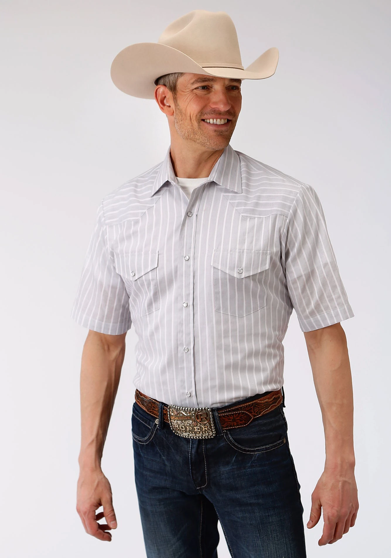 Men’s Short Sleeve Western Style Shirt * Standard 1 Pt. Front & Back Yokes * Patch Pockets & Flaps * Cotton/Poly Striped Fabric