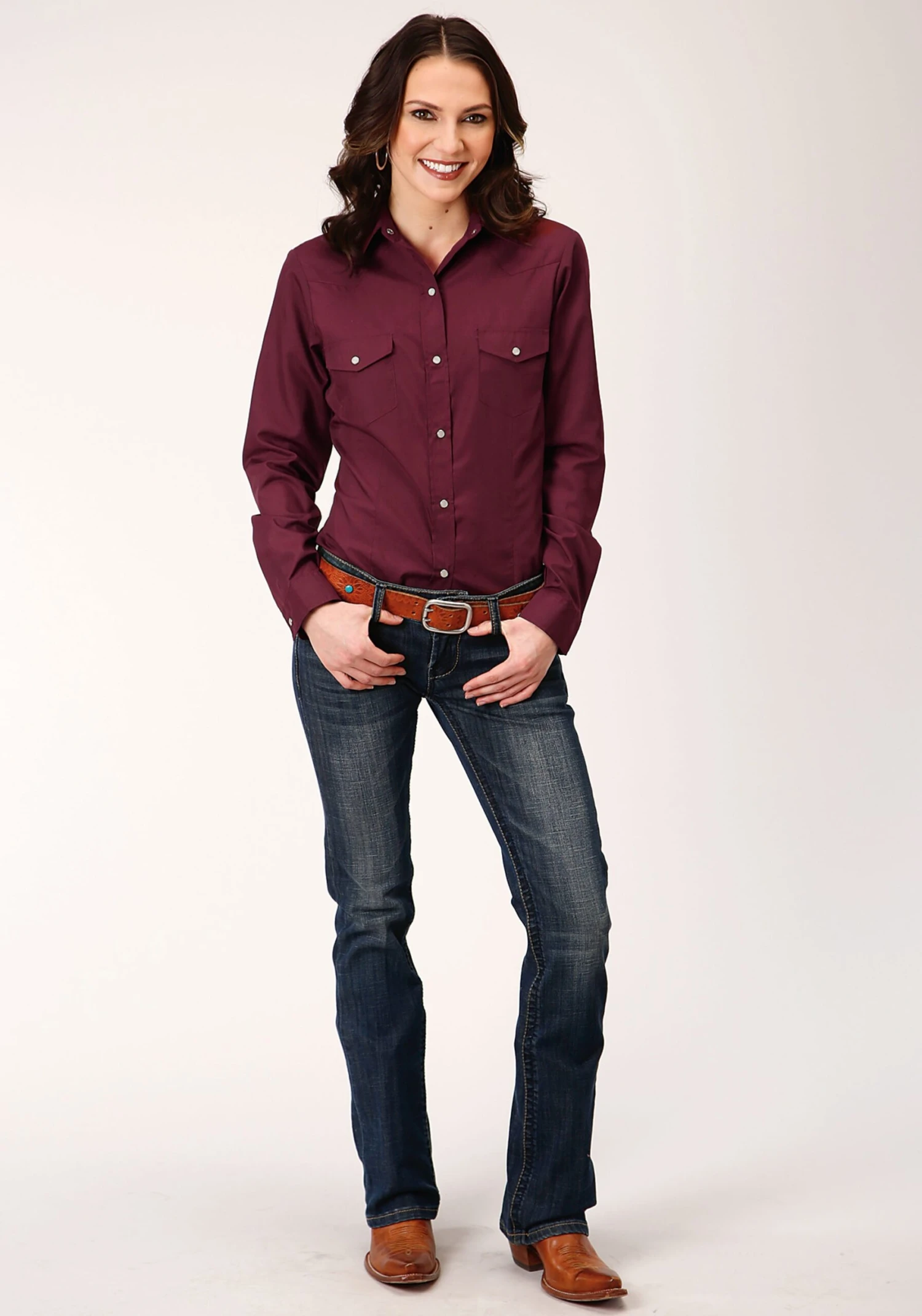 Roper Solid Wine Long Sleeve Snap
