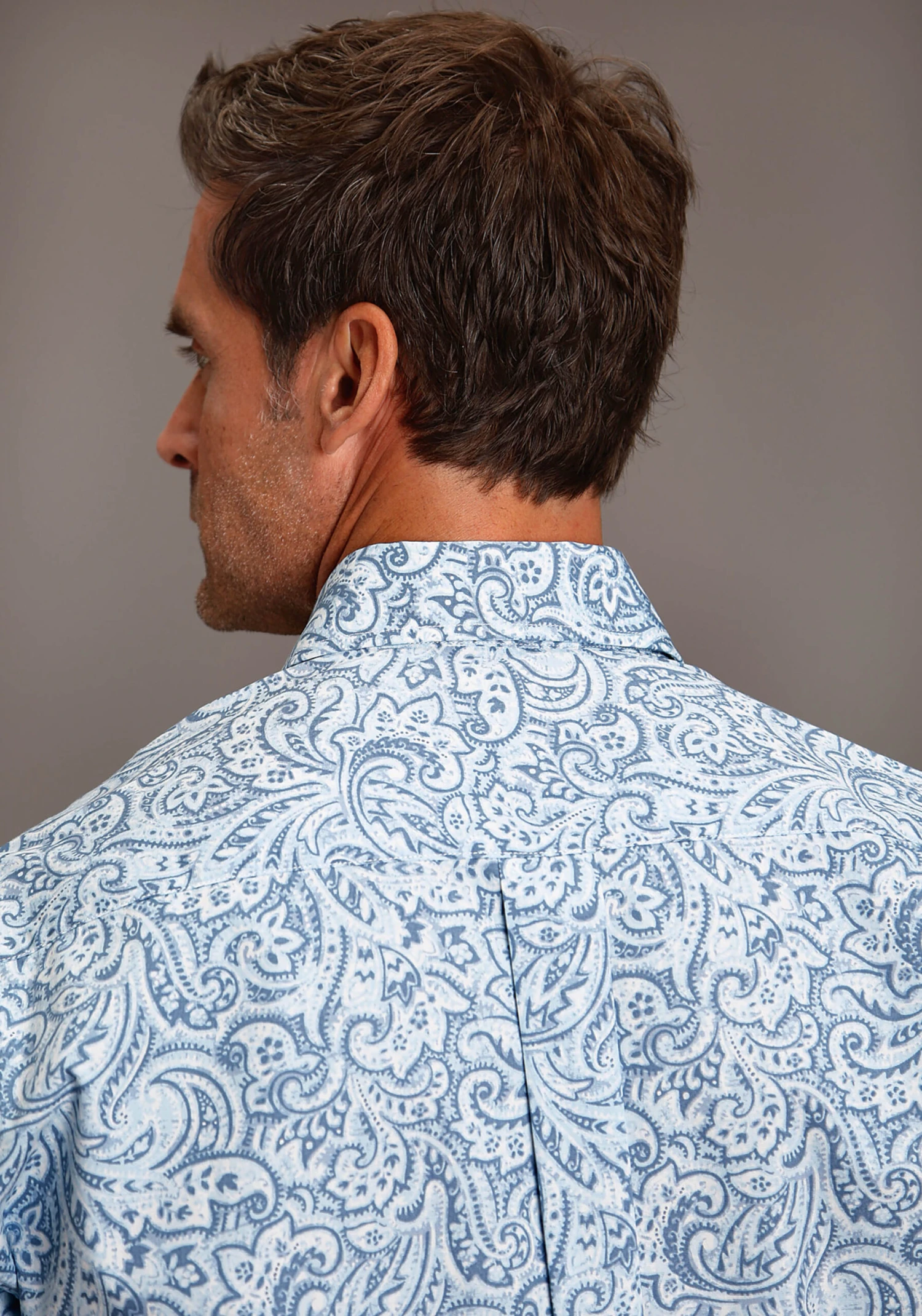 Stetson Blue Tooling Paisley Long Sleeve Shirt