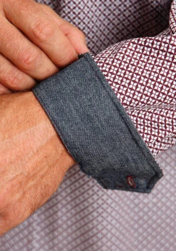 Allover Print On Cotton Poplin * Straight Back Yoke W/Pleat * Stetson “S” Emb * “Stetson” Emb On Right Sleeve Placket * 2 Btn Adj Mitered Edge Cuff * Denim Inside Trim * Classic Btn Front W/Logo Stacked Pearl Btns