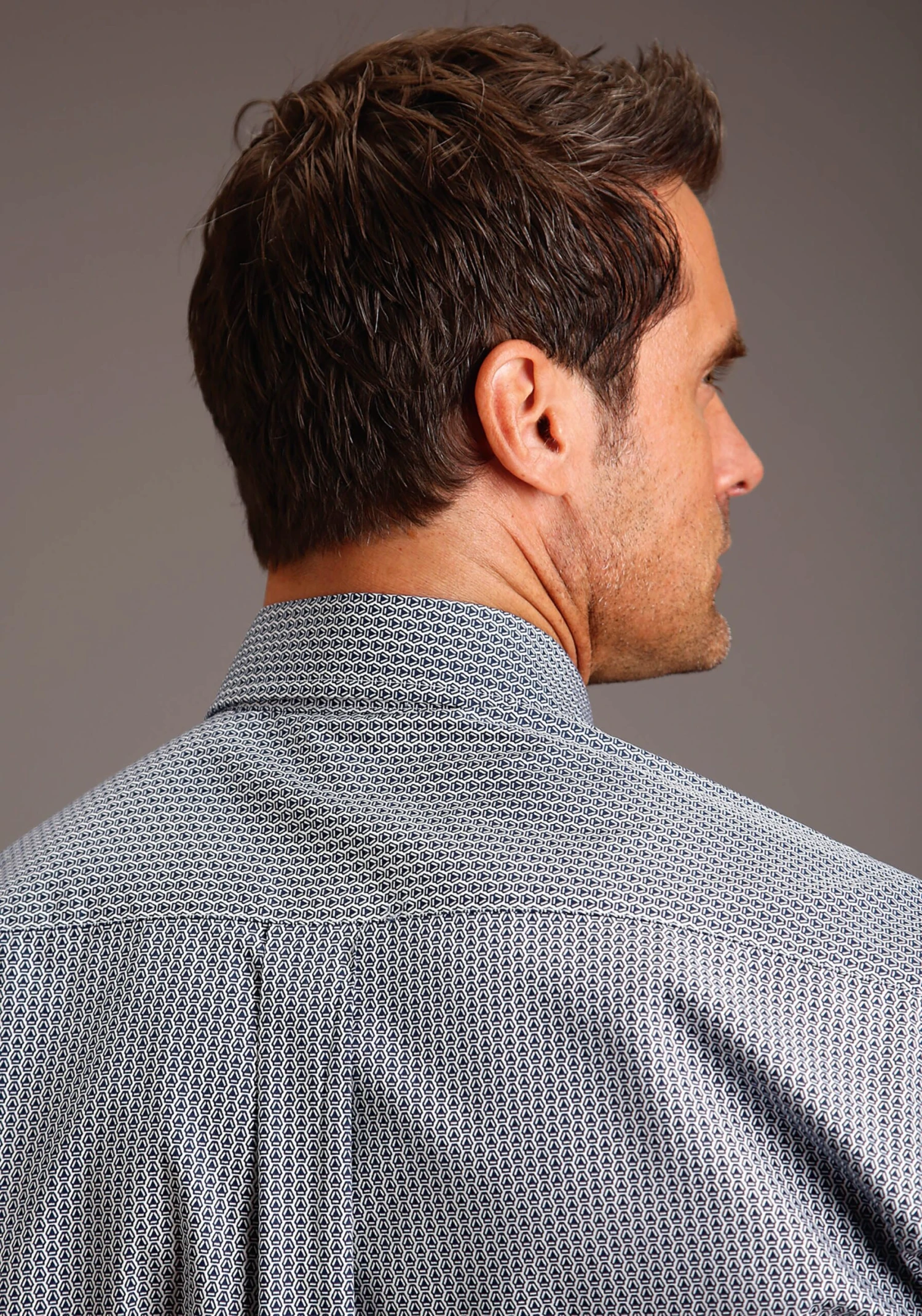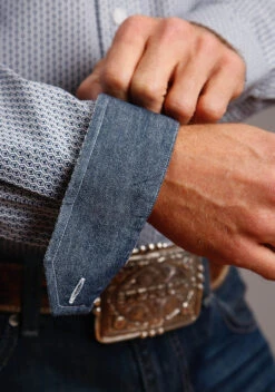 Allover Geo Print On Cotton Poplin * Straight Back Yoke W/Pleat * Stetson “S” Emb * Denim Inside Trim * Classic Btn Front Featuring Stacked Logo Btns