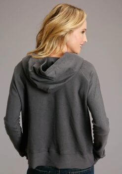 Women’s Charcoal French Terry Hooded Sweatshirt * V-Neckline And Twill Tape Ties * Raglan Sleeves With Overlock Stitching * Long Sleeves With Seam And Overlock Stitching * Kangaroo Pocket At Front