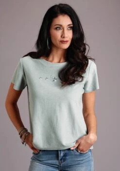 Women’s Seafoam French Terry T-Shirt * Self Neckline * Straight Hemline * Short Sleeves * Embroidered