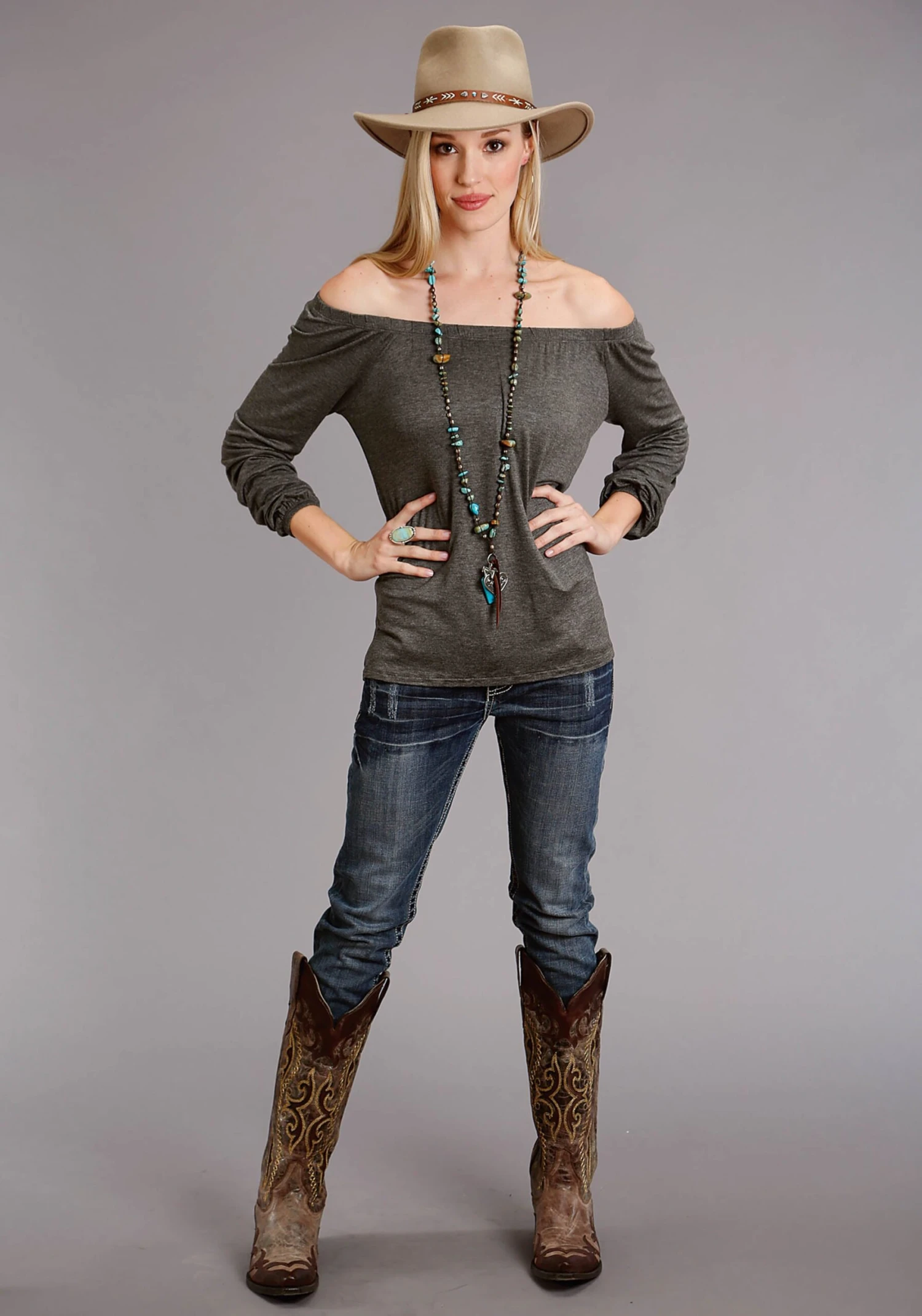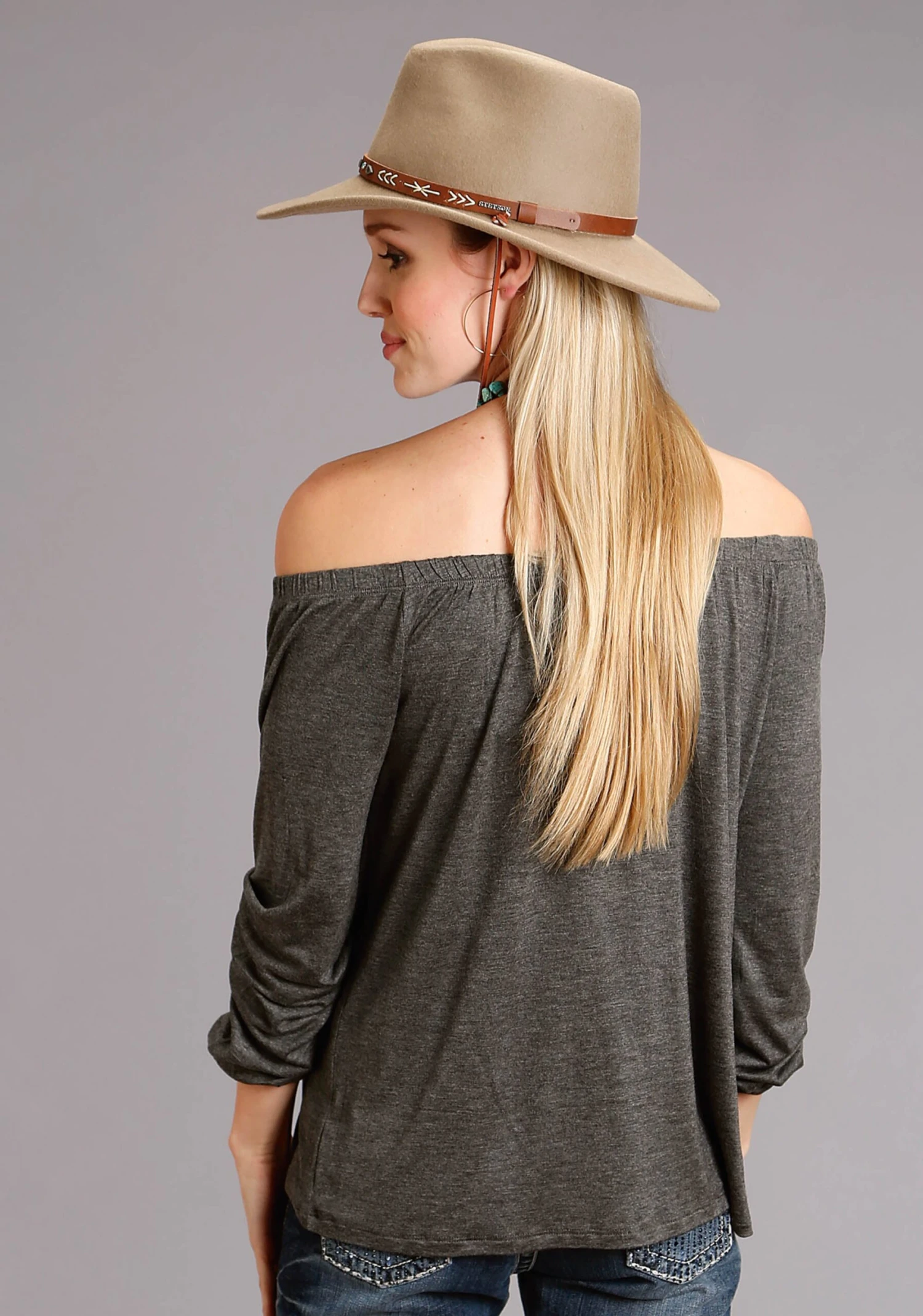 Heathered Jersey Knit Off Shoulder Top * Elastic Top And Cuffs * Raglan Sleeves *