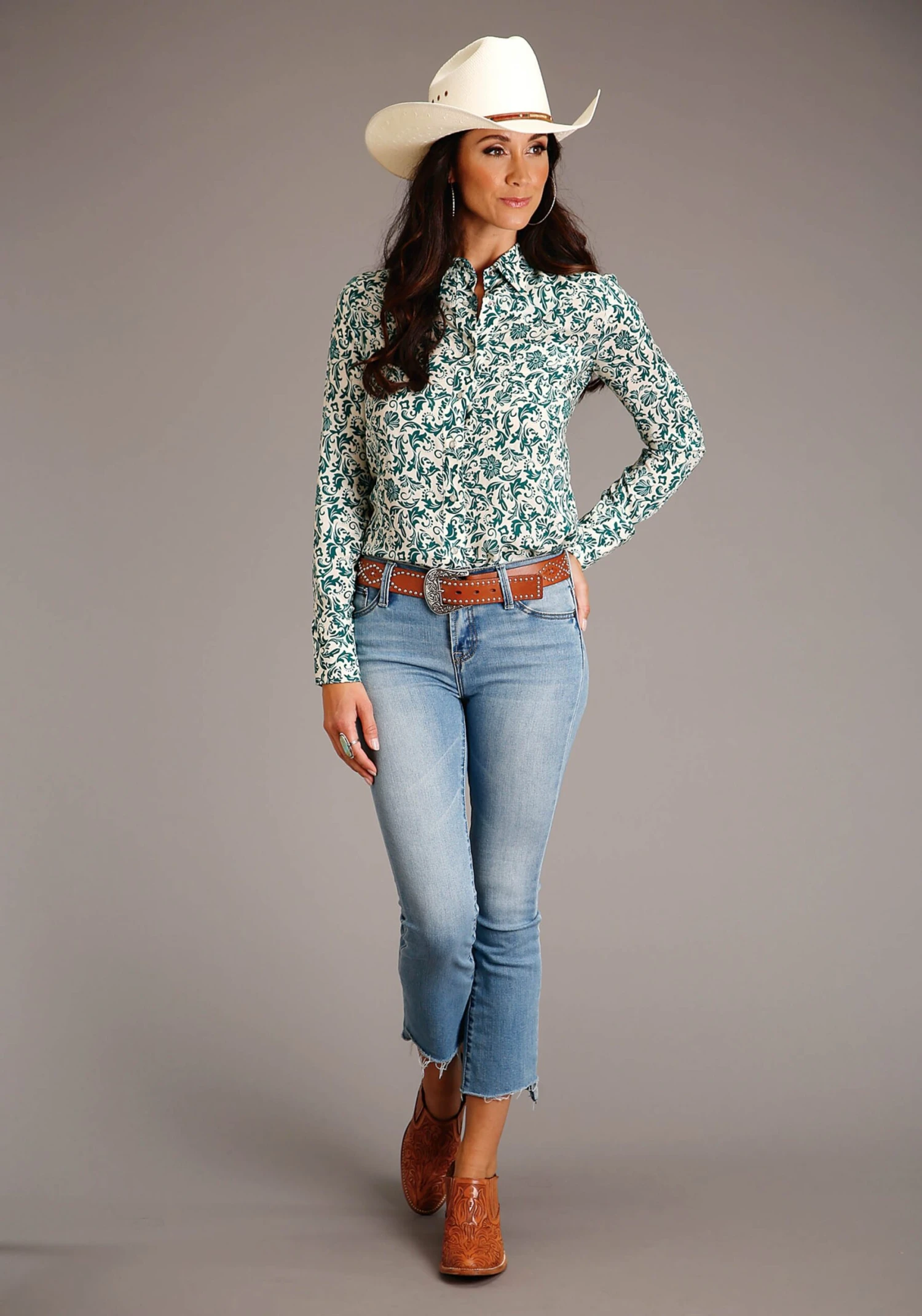 Stetson Roper Jade Floral Long Sleeve Blouse
