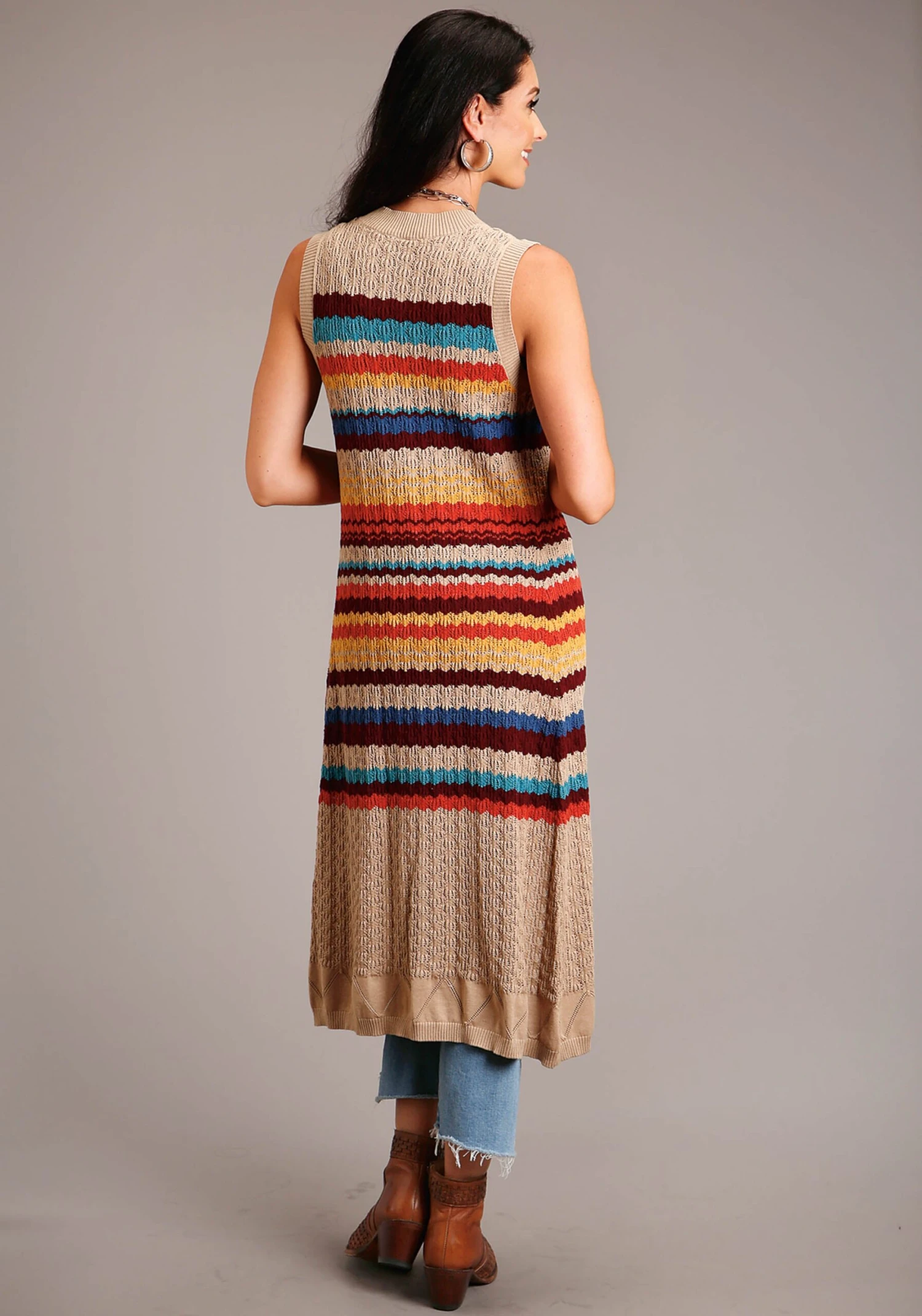 Women’s Open Weave Striped Sweater Duster * Open Vest Style * Great Layering Piece