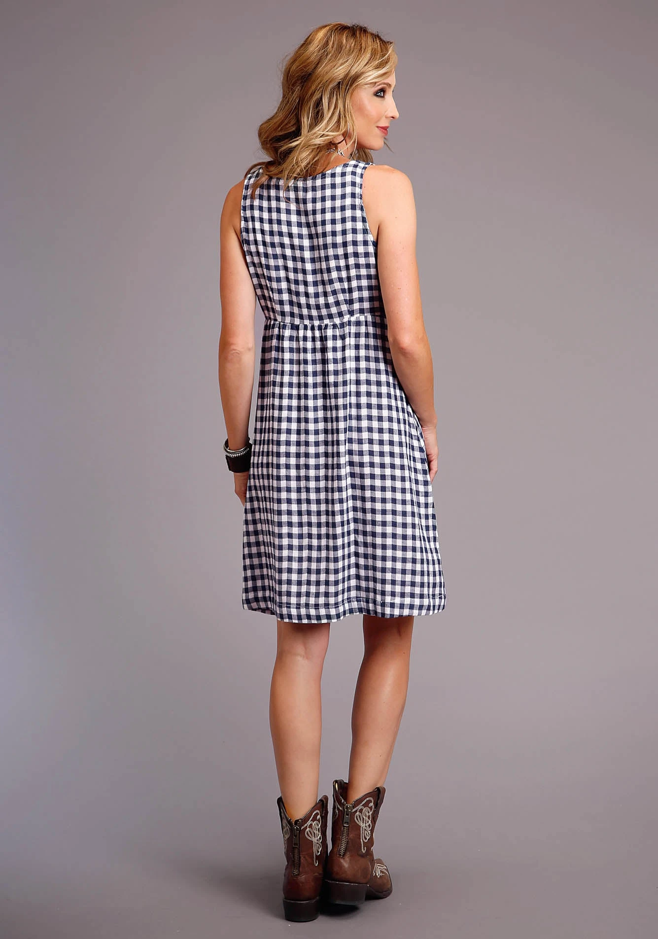 Navy And White Double Sided Gingham Tank Style Dress * Front Zip Placket * Fitted Top With Bust Darts * Slight Fullness To Skirt
