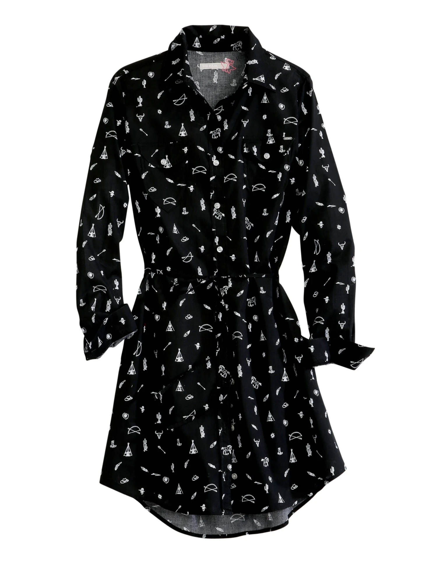 Gals Allover Printed Cotton Lawn Dress * Shirt-Dress Style * 1 Pt Curved Bk Yoke * Self Fabric Belt & Belt Loops * Side Seam Pockets * Metal Logo I.D. Tag * Pearl Button Front * Garment Washed