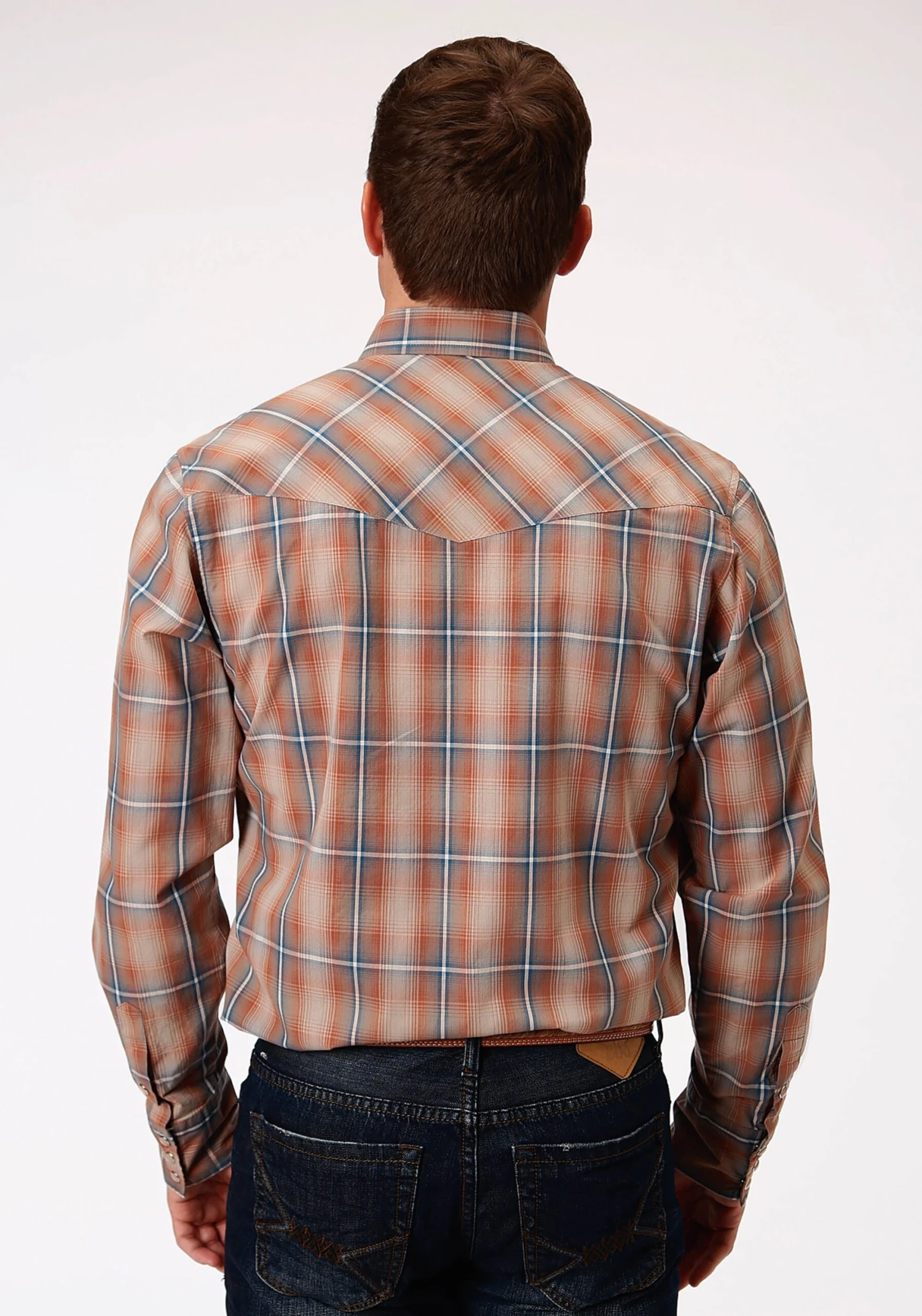 Guy’s Y/D Plaid * 100% Cotton * 1 Pt Front And Back Yokes * Select Bias Cut Pieces * Square Pockets & Flaps * Solid Khaki Poplin Inside Trim * 3 Snap Cuff * Emb Logo * Khaki Opaque Snap Front